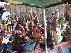 マッキーという現地のドライバーの運転で、支援活動の拠点となるケープマクレアへ向かった。途中で米50kg、そしてマッキーの自宅でもメイズ50kgを調達。これらは昨日購入したマラリア薬と併せて村に届けられる。舗装された道路を突っ走り、モンキーベイという地区のクリニックに到着。色とりどりの衣服に身をまとった大勢の患者と乾期の天候の良さで、本来の陰鬱とした雰囲気はそこまで感じられなかったものの、VCT(血液検査)やARV(抗HIV薬)と記された部屋とその待合室で力なく診察を待つHIV感染者と思われる人々を目にすると、やはり動揺してしまう。日本の病院のような清潔感もまったくない。ブングチとムサカでVCTの実施を予定していたため、その許可とスタッフの派遣をお願いした。クリニックを後にし、途中から舗装されていないガタガタ道をゆっくりと長時間走る。トラックの荷台に所狭しと乗った村人や、自転車にヤギを積んだ少年とすれ違う。そうしてようやくケープマクレアに到着した。